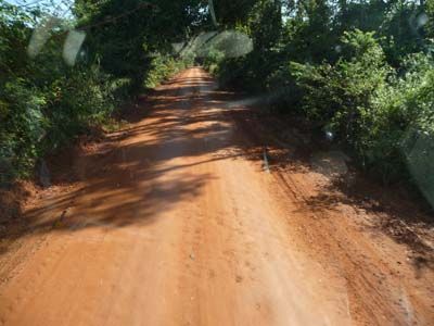end of two hours of a tree-lined track out of muddy laterite I achieved my