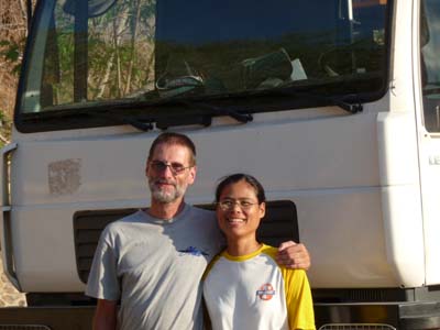 Curiously the following day there was no traffic on the road close to the beach; intrigued I went for my appointment at the embassy of Australia as of 09:30am. I was stopped shortly after the Comoro Bridge and I due giving up my truck and continuing on foot. Information taken, the road was blocked because the President of East Timor arrived this day. At the embassy the employee meant me that I was to pass a X-ray then to meet a doctor at the Australian Medical Clinic on Monday. Always on foot I was going to pass the X-ray before 12:00. Then I had lunch with my German friends. In the afternoon the road being always blocked I established my bivouac at the carpark of the Jesus Statue. I was very annoyed with this hitch which blamed my planning and appointments of the following week to put my truck in conformity with the AQIS before loading it the 07/09 for Darwin. Planning became tended. To enter Australia was proved more complex than all previous visited countries. I could not consider a refusal of a visa. |