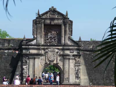 Le 24/04 je quittais Yangon pour Kuala Lumpur où j’arrivais vers 17:00. Au Tourism Information je m’informais des possibilités d’hébergement pour une nuit ayant été obligé de passer le contrôle d’immigration pour récupérer mon bagage. Je réservais une chambre au Allson Hotel à une demi-heure de taxi de l’aéroport. Le 25/04 le vol de 10:20 de Manille fut retardé pour des raisons techniques puis il fut annoncé qu’il y avait un changement d’avion et de terminal. Le vol décolla à 14:40 pour arriver à Manila vers 18:10. J’avais choisi un hôtel dans le quartier Ermita dans le centre de la ville. Je découvris qu’aux Philippines il faut régler la location avant de "monter". Je n’avais pas assez de pesos je dus aller à un DAB. Enfin vers 20:00 je pris possession d’une chambre. Ma première impression, en venant de Birmanie, fut de découvrir un pays très occidentalisé et au climat sensiblement plus clément. En ce dimanche 26/04 je commençais la visite de la ville par Manila Intramuros. La forteresse fut construite en 1571 par Miguel Lopez de Legazpi sur les ruines d’un établissement musulman, ennemi ancestral des espagnoles, à l’embouchure de la Pasig River. Elle fut envahi plusieurs fois par des pirates chinois, par les hollandais, les anglais, les américains, les Japonais et finalement détruite lors de WWII. La bataille de Manille lors de la reconquête fit plus de mort que la bombe d’Hiroshima. En effet la ville fut entièrement détruite par les bombardements américains. D’après des voyageurs à la fin du 19ème siècle elle était aussi resplendissante que Paris. Il ne reste que les murs et les bastions entourant un périmètre de 64 hectares. |
