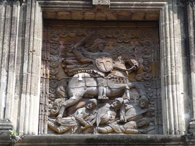 L’église de San Joaquin a une façade avec un bas-relief représentant une bataille entre chrétiens et musulmans, ennemi ancestral. |