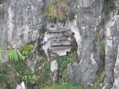 | 2- Lumiang Burial Cave contient plusieurs centaines de cercueils dont les plus anciens seraient vieux de plus de cinq cents ans. Ils ne contiennent pas de momies, uniquement les ossements des défunts. | |
