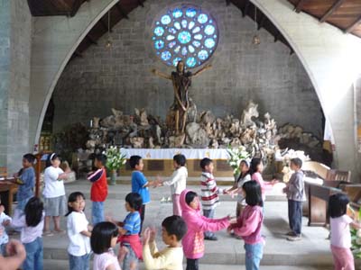 Guimbal possède une église romane en grès près d’une très jolie place. Au village de Tigbauan une église de style baroque avec de remarquables bas-reliefs fut la première école jésuite fondée en 1592. En ce samedi j’assistais à un mariage. Ces visites prirent une petite journée requérant l’attente du passage d’un jeepney pour aller au village suivant. |