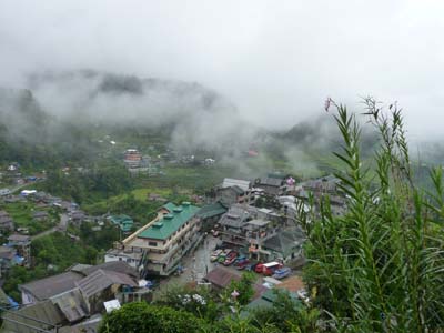 Le lendemain 06/05 je pris un bus cahotant pour Banaué où j’arrivais sous une pluie battante à 1400 mètres d’altitude. D’ailleurs la ville était dans les nuages. Bien sûr je rendis visite au musée local qui est intéressant mais sans plus. Les objets exposés sont dans des vitrines dépourvues d’éclairage. Il faut vouloir le visiter, il est vrai que la culture se mérite. |