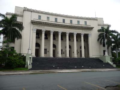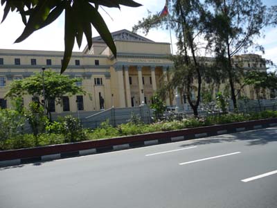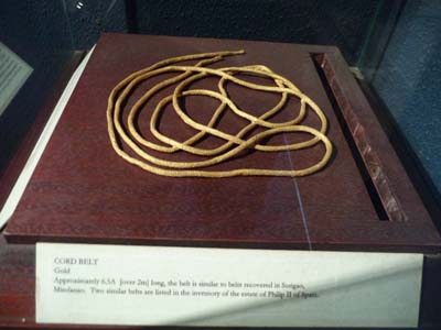 | Lors de mon retour du Nord de Luzon, voir infra, je restais deux jours à Manille pour visiter deux musées remarquables. Le National Museum of the Filipinos people fut conçu par l’architecte américain Burham de l’école de Chicago et réalisé par Pearson, de l’école des Beaux Arts de Paris, avec un bureau d’études de Manille. La pièce maîtresse est l’épave du San Diego, Galion espagnole, coulé en 1600 lors d’une bataille avec un vaisseau hollandais. Un étage est consacré à l’art préhispanique avec notamment des objets funéraires. | |
