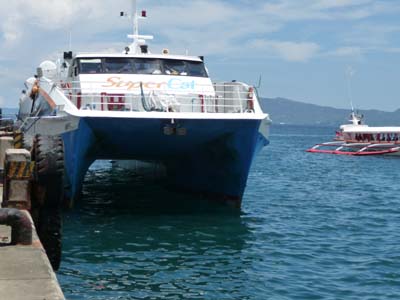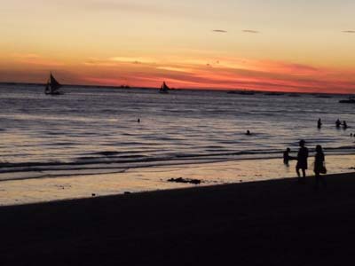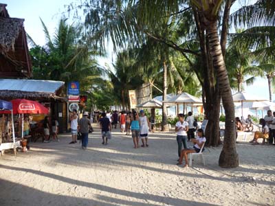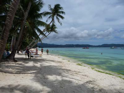 Après l’épopée de la fin du voyage dans la Cordillera je restais deux jours à Manille avant de reprendre la route pour aller me reposer sur l’île de Barocay. Le 11/05 fut une journée de transit en bus pour Batangas, puis en ferry-boat pour Calapan, île de Mindoro, et finalement en mini van pour Roxas où j’arrivais vers 16:00. Cette ville est le port d’embarquement des camions pour l’île de Panay. Le lendemain fut encore une journée de transport en ferry-boat de Roxas à Caticlan, île de Panay, puis une navette de petits bateaux pour l’île de Barocay et enfin en tricycle jusqu’à l’hôtel où j’arrivais vers 16:30. Je me reposais au bord de la plage jusqu’au 15/05. Cette plage de sable blanc est agréable mais sans plus car très étroite. La partie sous les palmiers est occupée par les restaurants des hôtels. En fait ce n’est qu’une succession de restaurants, de boutiques pour touristes et de centre de plongée sous-marine. |