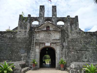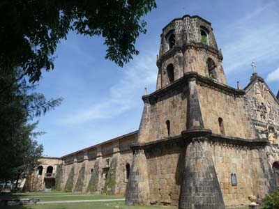 L’église de Miag-Ao est inscrite au patrimoine mondial de l’humanité avec en façade un bas-relief de St Christophe se promenant dans une forêt tropicale avec l’enfant Jésus. |