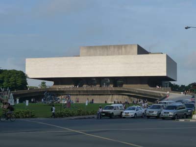 Le Metropolitan Theater, Art Déco 1930, est en l’état d’une ruine squatté par des mendiants. Le National Museum of the Philippines est fermée pour rénovation depuis plusieurs années. Le Rizal Park, en mémoire du Dr. José Rizal exécuté par les espagnoles en décembre 1896. Le renouveau architectural vit émerger des bâtiments en béton tel le Cultural Center of the Philippines par Leandro Locsin. |