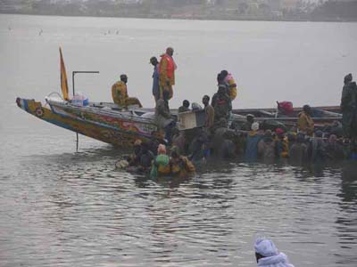 au Barrage de Diama, puis l'entrée au Mali de l'autre côté du barrage.
