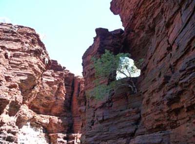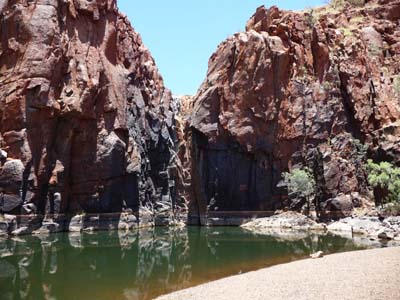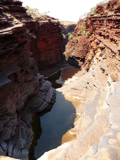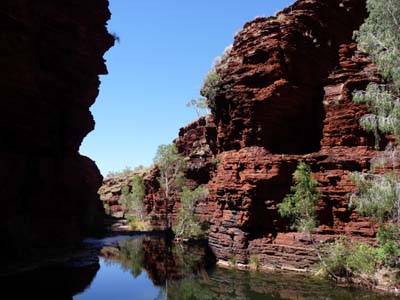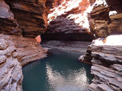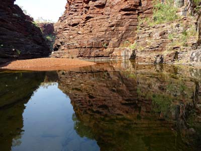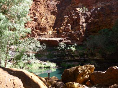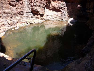 Using a ladder I went down into Hancock Gorge to go to have a bath in Kermits Pool. The track walked between the vertiginous walls of cliffs. I crossed by Amphitheatre and Spider Walk to lead to Kermits Pool. The spectacle was dazing, the bath was at the level of the spectacle. |
