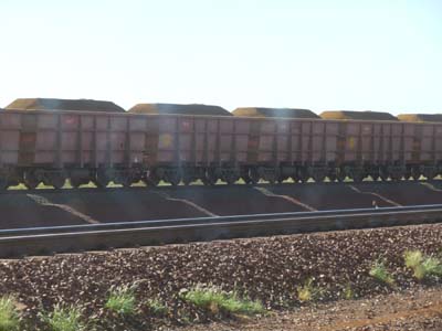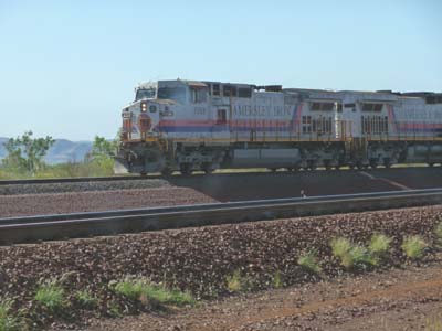 On 27/11, it was a long driving day, gravel road, to go from Millstream NP to Karijini NP by passing by the private road of the iron ore train which skirts the railway, I had obtained a permit of passage. It seemed to me that the convoys were followed to the rhythm of every fifteen minutes. I could not count the number of wagons, but certainly a hundred. |