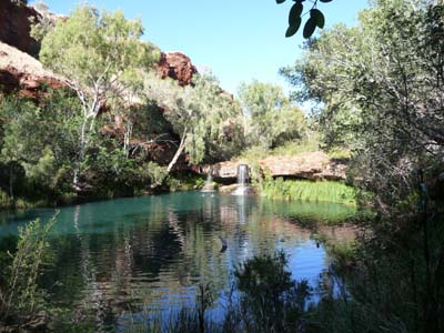 On November 28 as of 7.00 am, I was in front of the sumptuous Dales Gorges. I plunged inside by a staircase cut in rock to see Fortescue Falls. Then I went to refresh me in Fern Pool around 8.00 am, by taking a bath in cold water but relaxing. I remained a long delicious moment there. A this early hour, I was alone. |