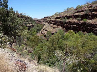 Still about fifteen kilometres away Joffre Gorge is spectacular from the Lookout, I went down by a sharp track in cliff to have a bath in a water hole of the water falls at that time without water. I bivouacked in Savannah Eco Retreat for two nights. |