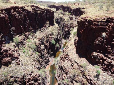 Knox Gorge approximately 15 kilometres away is much more wild with its covered cliffs with vegetation, I did not explore the track into the bottom of the gorge. |