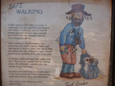 I went again on my steps by the same track to take again a bath in Fern Pool around 12.00am before returning to my truck to have lunch and rest of this long morning of walk. While strolling I saw some birds but any quadruped, I still did not see any dingo, although panels warn against their ravages. |