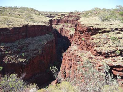 Karijini is the second largest park in Western Australia. It is renowned for its breathtaking gorges, spectacular water falls, idyllic swimming holes, its flora and fauna. It is at about 670 metres height given by GPS. |