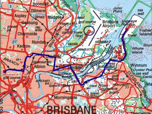 -- From Newmarket Gardens to port of Brisbane |