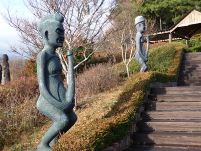 The day after I took a bus to go to Samcheok and further on to a fishing village. Sinnam are famous by Haesindang Park, called Penis Park, on hillside overhanging a very agitated blue sea. This park exhibits more than fifty phalli carved either in wood or in stone and even bronze. At the hilltop twelve phallic sculptures have animals of the Chinese zodiac, look at "Gallery". A local legend is at the origin of this phallic overflow to calm a virgin who had drowned and whose spirit disturbed the village. A small museum is devoted to fishing, shamanism and sexual iconography in other cultures. |