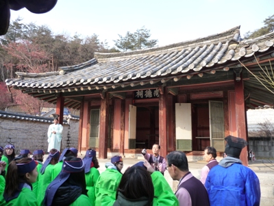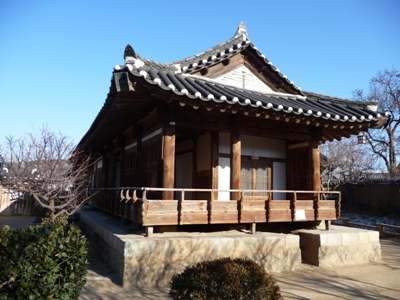 Seongyojang, aristocratic residence which was built in 1703. It has for only interest to be furnished from that era. The weather was gloomy with a rise in temperature which announced a rain which fell indeed during my visits. |