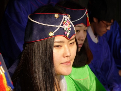 Andong is the city of the Korean spirit, many old sites are in the area. I visited Hahoe Village where the members of the Ryu family lived for 600 years. It is composed of houses very well preserved and still inhabited nowadays. I strolled it by a cold sunshine day, the surrounding countryside was covered with white frost. |