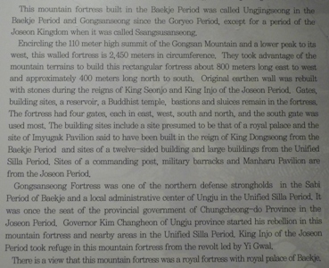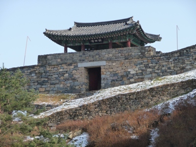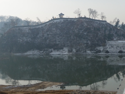 Along the Geumgang river one a hill the Gongsanseong fortress was built starting from 475 AD to protect the capital of the kingdom. Wall and pivilions were restored in 1980. |