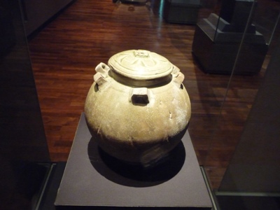 December 10 I left Andong for Gongju. After more than 3 hours by bus with a change at Deajeon, I arrived at the hotel around 11am in a city covered by a fine snow film. I began the visits with the site of the tombs of kings of Baekje one of the three kingdoms which reigned from 57 BC to 668 AD. The most significant is that of King Muryeong, 461 to 523 BC. It was discovered in 1971, it was never violated. Its funerary furniture was intact, it was of a great utility for scientists. A museum exhibits objects discovered in the tomb, furniture, jewels and potteries. Kings believed in the rebirth, death was a waiting state. |