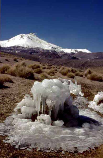 the base camp is 4,700 m high close to Incas ruins. This volcano is a