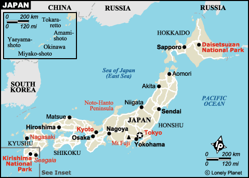 Japan is bordered in the east by the Pacific Ocean and in the North-West