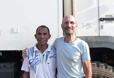 a foreigner driving a truck.