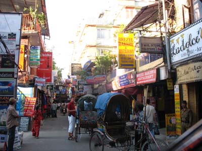 Katmandou pour le touriste c'est Thamel et ses boutiques de fringues et d'objets divers, de restaurants, de cybercafés. Il y flotte une odeur d'encens émanant des boutiques comme pour cacher le remugle de détritus en cours de putréfaction. Katmandou ou plus tôt Thamel est inusable, immuable rien n'a pratiquement changé si ce n'est quelque centaines de mètres de rues pavées. La plus grande novation est l'accès payant à Dubar Square, 20 NPR pour les locaux et 200 NPR pour les touristes avec la possibilité d'obtenir un "Visitor pass" jusqu'à la fin du séjour. L'accès aux autres sites de la vallée de Katmandou est aussi devenu payant. |