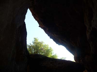 Cette journée du 14 novembre ne fut pas inscrite au patrimoine de ma mémoire. La Fairfield Leopold Downs Road était acceptable, la tôle ondulée de sa chaussée avait été scrapée. Les curiosités de la journée ne furent pas marquantes. D’abord la Lillimooloora Police Station, ruine historique de 1893, ne valait pas les 20 mètres de détour de la piste principale. Ensuite, 35 kilomètres plus loin je m’arrêtais pour visiter le très renommé Tunnel Creek. Bien, c’est une excavation naturelle avec une nappe d’eau souterraine et des concrétions. L’entrée requiert un cheminement dans les éboulis. La photo obligée est un contre-jour de l’intérieur de l’entrée. |