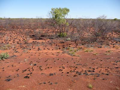 Le lendemain fut encore une journée sur le bitume, quelle monotonie ! Malgré tout le paysage changea, de nouveau des terres rouge et stériles. Je m’arrêtais pour déjeuner sur l’aire de Sandfire Roadhouse où des road trains faisaient une pause, je revis l’un d’eux quelques temps après en mauvaise posture. |