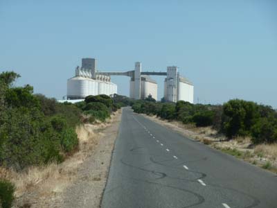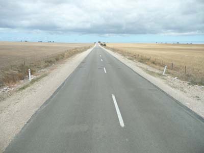 La route côtière cheminait entre les champs de céréale à perte de vue, l’horizon étant coupé par les silos à grains. Jean-Claude me disait que certaines exploitations ont une superficie qui se compte en millions d’hectares. |