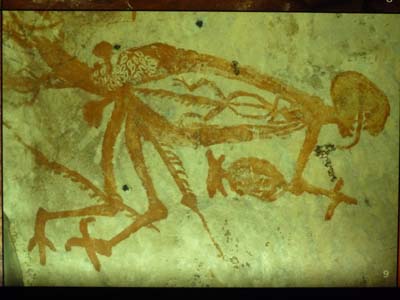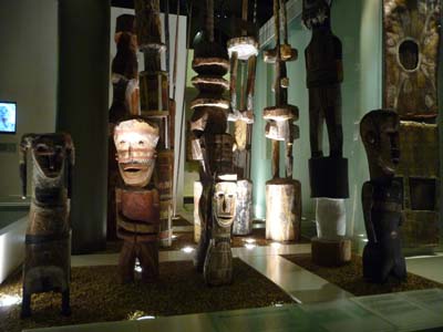 Pour le premier jour de visite je consacrais plus de deux heures à explorer le South Australian Museum qui n’est certes ni Le Louvre ni le MoMa mais qui recèle quelques pépites. J’en livre quelques unes. La galerie consacrée à l’art aborigène présente une peinture murale des années 1800 consacrée à la sorcellerie protégeant des maladies importées par les européens. Puis un ensemble de totems met en valeur l’art de la statuaire. |