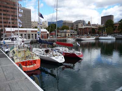 Le 07 avril après avoir consulté ma messagerie Internet au Online Centre d’Oatlands je me rendis à Hobart où en premier lieu je fis permuter les roues puis je résolus d’autres menus problèmes. Il en restait deux en attente. Sous la pluie battante j’allais au Treasure Island Caravan Park, au bord de la Derwent River, à environ une dizaine de kilomètres du centre ville ! J’y restais deux nuits pour visiter la ville en transports en commun. |