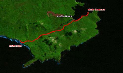 Le lendemain à Cookle Creek le temps était propice à une randonnée pour visiter South Cape Bay puis au retour la piste allant à Whale sculpture. Cette course en ligne totalisa 19,6 km GPS dont la trace est mise en perspective avec une carte des Rangers. Entre l'Antarctique et South East Cape il n'y a que l'océan. Je marchais pendant 4.30 heures dans un paysage de forêt et de plage. La température était clémente. Je rencontrais un australien qui l’année dernière parcourut le Chemin de Compostelle à partir de la ville du Puy (France). |