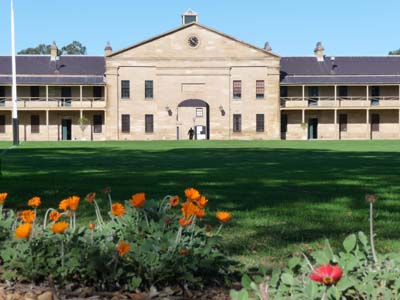 Then by walking up Bourke St and Oxford St I arrived at time for a guided tour of Victoria Barracks by septuagenarian volunteers. This building of Georgian style was built since 1841 out of sandstone. The main building makes 225m long with two storeys with a cast-iron veranda. The military museum exposes costumes and weapons of time. |