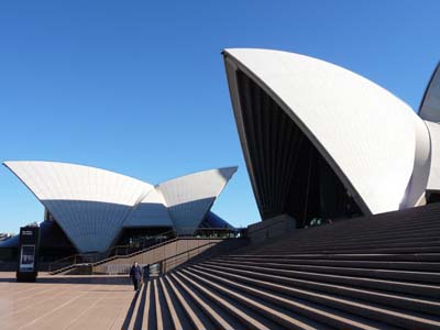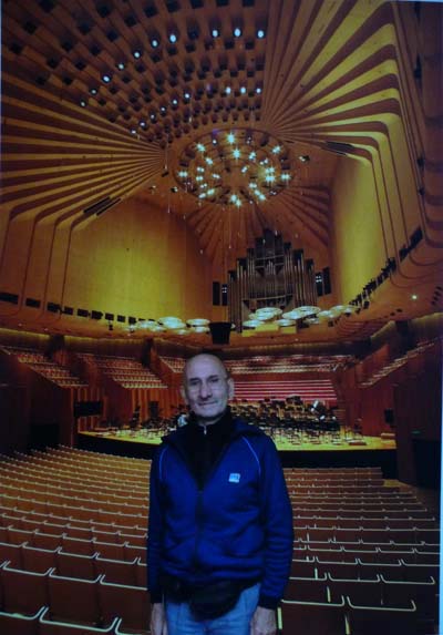 Finally the paramount of the day was a guided tour of the Opera House, I had taken the previous week a ticket for the French tour at 3pm. I had the pleasant surprise to be alone with Magali my nice guide. During one hour I traversed the basement and the four rooms by listening comments and by visualizing two videos projected on the walls. The choice of the project was made with a view of a draft by a show of hands of external conceived by Jorn Utzon, a Danish architect. Of course time and cost of such a building skidded and Jorn Utzon resigned under the pressure of the policies. The metal structure of the construction of the roof shells is four times heavier than that of Harbour Bridge. Three materials only were imported plat glasses of the canopies from France, wool of the armchair cushions of the from New Zealand and ceramic covering the roofs from Sweden. The wooden essence used in the rooms was particularly studied to obtain the best acoustic. I left my guide of French origin with melancholy. |