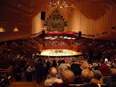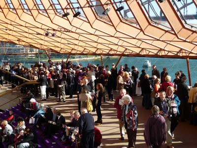 In this beautiful morning of mid June the foyer gives a stunning view on Sydney Cove, Harbour Bridge and Denison Fort. The doors of the concert hall were open five minutes before the concert while waiting for a tea with cookies was offered. |