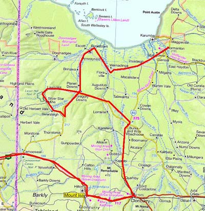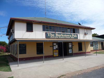 L’étape à Burketown promettait d’être culturelle selon le Lp. En effet une partie de la nouvelle de Nevil Shute, "A Town Like Alice" se passe à Burketown, hélas rien ne mentionne cet évènement pas même une affiche au Visitor Centre. La seule curiosité fut le Pub, …, vieux de 130 ans, une antiquité australienne ! Je bivouaquais à Gregory Downs en route vers Boogjamulla NP. |