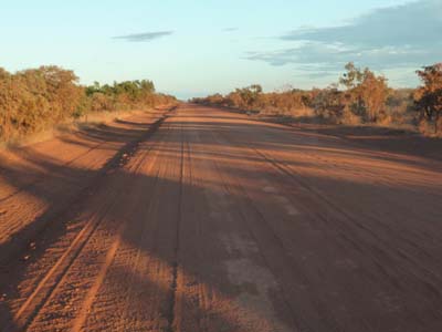 La route de Boulia à Bedourie traverse "The Channel Country" ainsi nommée pour les nombreux petits canaux qui la parcourent. Cette région a un sol très humide tout en étant un désert. |