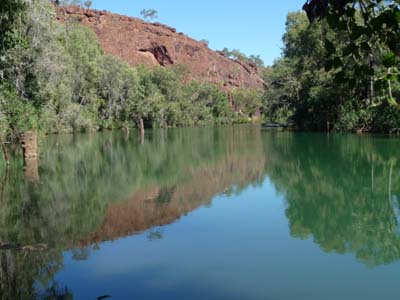 Le lendemain dès proton–minet je parcourais la gravel road vers Adels Grove où je réservais un emplacement pour le bivouac du soir. Puis je me rendis à Boodjamulla NP pour randonner dans la Gorge depuis la partie basse où je visitais un site de l’art Aborigène. Je cheminais jusqu’en milieu d’après-midi dans des paysages magnifiques parmi un mélange de fragrance de terre et de roches surchauffés, de senteurs d’eucalyptus et d’herbes sèches. Je parcourais environ 13km GPS en quatre heures J’évacuais le stress de l’attente d’information pour les futurs pays à visiter ainsi que des dysfonctionnements du camion et de la cellule à réparer, si possible avant de quitter l’Australie. En réalité je les cachais sous le tapis. |