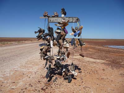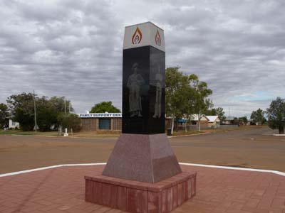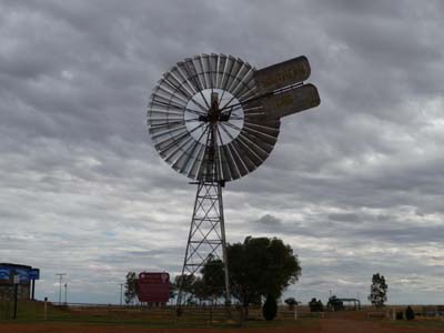 En quittant plein sud Mt Isa par une route à voie unique avec des bas-côtés stabilisés pour croiser et doubler je me dirigeais vers Birdsville pour parcourir la mythique Birds Track. Mais avant je visitais Boulia, 300 habitants, qui accueille les voyageurs avec un obélisque et un gigantesque moulin à vent. Le Visitor Centre abrite le Min Min Encounter Centre qui rassemble un bric-à-brac d’objets et deux mannequins psalmodiant l’histoire de la ville. Une très belle camionnette Dodge témoigne de la splendeur passée de la ville qui est connue par la course annuelle de chameaux ainsi que par une mystérieuse lumière apparaissant et disparaissant nuitamment, appelée Min Min. |
