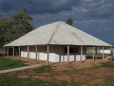 Bedourie, "Oasis in the Desert", fut une halte au 19ème siècle pour les vachers qui transféraient le bétail du Northern Territory vers le Queensland à Birdsville puis vers les marchés du South Australia. La seule curiosité est une maison en torchis vestige de cette époque. |