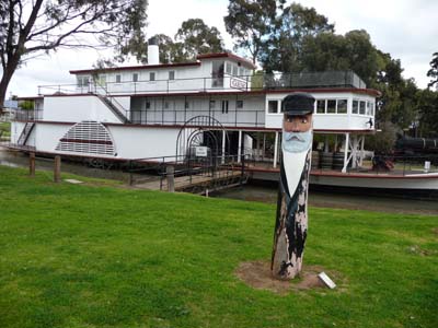 Mildura est ville moderne aux larges avenues quadrangulaires dont la seule réelle curiosité est la maison Rio Vista, habitation de William B. Chaffrey, transformée en centre artistique et musée, voir Gallery-4. Les jours suivants je parcourais la Murray River le plus long fleuve, 2700km, navigable d’Australie et le troisième du monde. Autrefois des bateaux à roues transportaient des marchandises depuis Murray Bridge. |