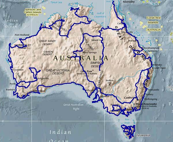 I Les origines: La pauvreté de son sol et la rudesse de son climat sont le résultat de son évolution différente des autres continents. Elle était trop plate, trop chaude et trop sèche pour avoir des glaciers principalement à l’origine des sols fertiles. La faune et la flore se sont adaptées à de telles conditions. L’Australie est le plus ancien continent habité depuis plus de 60.000 ans par les Aborigènes. Lors de l’arrivée des colons britanniques ils étaient environ 750.000 répartis en 300 groupes de langues. Ce sont des nomades chasseurs cueilleurs habitants des huttes temporaires. Leur art s’exprime en peinture sur les parois des grottes représentant leur vision de la création du monde –Dreamtime or Dreaming– et leur style de vie, ainsi qu’en divers objets de la vie courante. Au 19ème et début du 20ème siècle ils furent exécutés par milliers. A partir des années 50 leurs droits furent progressivement reconnus et la Cours Suprême abolit la doctrine du Terra Nullius en 1992. Aujourd’hui ils constituent environ 1,6% de la population de l’Australie. Dès le 15ème siècle les Portugais entreprirent la circumnavigation du globe. La première carte de l’Australie fut réalisée à Dieppe, France, entre 1540 et 1566, décrivant l’Australie comme Java La Grande au sud de l’Indonésie. Au 17ème siècle les Hollandais prirent le contrôle de l’Indonésie, Dutch East Indies. Abel Tasman réalisa, entre 1642 et 1644, des cartes de l’Australie avec la Tasmanie ainsi que de la Nouvelle-Zélande. En 1688 William Dampier débarqua en Australie et publia New Voyage Round The World en 1697. En 1768 Captain James Cook arriva sur la côte est de l’Australie qui fut proclamée en 1770 possession de la couronne d’Angleterre par George III, appelée, New South Wales. En 1788 the First Fleet composée de neuf navires avec 210 marins, 750 bagnards, 40 femmes et enfants aborda à Sydney Cove. La colonisation de l’Australie commença. Tasmania devint une colonie en 1825, Western Australia en 1829, Victoria en 1851, Queensland en 1859 et South Australia en 1836. Le Gold Rush débuta dans les années 1850 par la découverte de l’or à Bathurst, NSW, à Ballarat et Bendigo, Vic. En 1880 l’Australie fut un pays prospère avec la construction de nombreux édifices dont certains le furent par des bagnards. A la fin du 19ème siècle l’Australie connut une profonde dépression. Le 1 janvier 1901 la Fédération des six premières colonies fut proclamée. Le premier acte fut le White Australia Policy, une loi de restriction de l’immigration avec un test de dictée dans des langues obscures comme le Gaélique ! En 1902 l'Australie fut le premier pays au monde à accorder le droit de vote aux femmes. En 1915 l’Australie entra en guerre pour défendre la mère patrie avec le débarquement désastreux à Gallipoli en Turquie. 64% du corps expéditionnaire australien, 331.781 soldats, périrent ou furent blessés. The Anzac Day –Australia & New-Zeland Army Corps– est reconnu par les australiens comme étant la fête nationale. Pendant l’entre-deux guerres l’Australie connu une période de prospérité avec la construction notamment du Sydney Harbour Bridge. La crise de 1929 l’atteignit jusqu’en 1933. Mais l’annonce de la guerre en Europe en 1939 eut des répercussions inattendues. En 1942 l’Imperial Japanese Army bombarda Darwin, Broome et Townsville et des sous-marins japonais entrèrent dans Sydney Cove. L’Angleterre demanda des troupes à l’Australie qui refusa arguant la guerre du Pacifique. Ce fut le premier engagement de l’armée australienne au côté de l’armée américaine. Le général D. MacArthur établit son quartier général en Australie pour la reconquête du pacifique : "I shall return". En 1951 le traité de l’ANZUS, Australia, New-Zealand & United State, fut signé. Le gouvernement australien prit conscience que la sécurité du pays était dépendante d’une économie forte avec une population importante. Dans les vingt années qui suivirent la fin de la guerre près de deux millions d’immigrants arrivèrent dont plus de 40% était d’Europe Continentale. Aujourd’hui la population est d’environ 22 millions d’habitants.