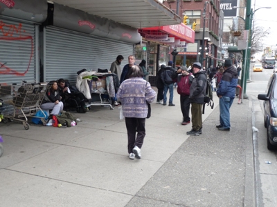Le 20 janvier l’avion d’Air Canada atterrit à l’heure prévue. Le contrôle de l’immigration fut très rapide en tant que français j’obtins un visa gratuit de six mois. A l’Information Kiosk de l’aéroport le personnel très serviable me donna toute information pour prendre le train puis le bus pour aller au Budget Inn Patricia Hotel où j’arrivais vers 12:30. Le temps était couvert, la température d’environ 2°C et il bruinait. La ville est très différente de Tokyo de plus le quartier où se trouve l’hôtel est fréquenté par des clochards et vraisemblablement des drogués. Je m’installais pour une dizaine de jours en attente de l’arrivée du bateau Pacific Java prévue le 1er Février. |