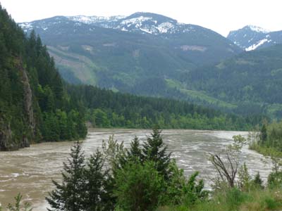 Je quittais sans regret Vancouver après avoir résolu un dernier problème survenu à mon ordinateur de bord, le Toughbook CF-19, dont la carte Wireless se désactivait inopinément. Un réparateur trouva la solution en désinstallant la carte que Windows réinstalle automatique ! J’espère qu’il s’agit d’une réparation définitive. Je repris la Hwy 1 puis la Hwy 97 en sens inverse du parcours de la semaine précédente me dirigeant vers le nord du B.C. puis vers l’Yukon –YT– et peut-être l’Alaska. Je déjeunais au Yale Tunnel où j’avais bivouaqué le 21 mai ; je constatais que les sommets étaient toujours couverts de neige. Avec plaisir je retrouvais le fonctionnement satisfaisant de ma cuisinière au gasoil dont la bougie de chauffage avait été remplacée suite à la réception des pièces de rechange contenues dans le colis réceptionné la veille. |