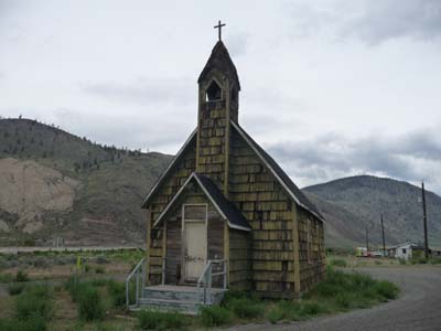 Le temps était à la pluie, je trouvais un bivouac avant le Spences Bridge au pied de l’église du village. A peine arrivé la pluie s’abattit violemment. |