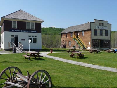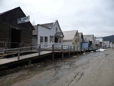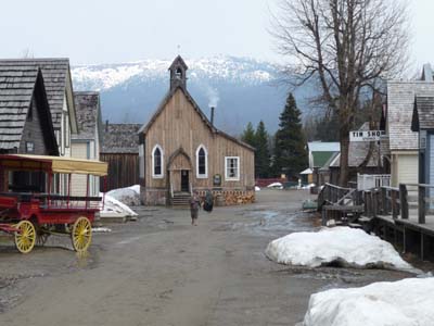 Barkerville fut érigée dans les années 1862 après que William Baker eut découvert un filon aurifère dont il tira $6 millions en or. En 1865 la Cariboo Wagon Road atteignit Bakerville permettant un approvisionnement régulier du village. En septembre 1868 un incendie ravagea la ville qui fut reconstruite avant l’hiver. Mais bientôt le rêve s’évanouit et la ville déclina rapidement. Les maisons actuelles ont été reconstituées à partir de photos d’époque. Le site est ouvert au tourisme vers mi-mai après la fonte des neiges, l’altitude du village est d’environ 1300 mètres. L’activité touristique n’était pas encore très grande. La visite du site montre la rudesse de la vie des chercheurs d’or à cette latitude dans des conditions très difficiles. |