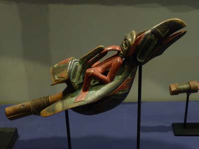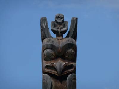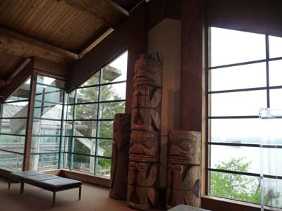 Plus loin le Tlingit Heritage Centre expose des Totem Poles et des Masques crées par les artistes locaux. |